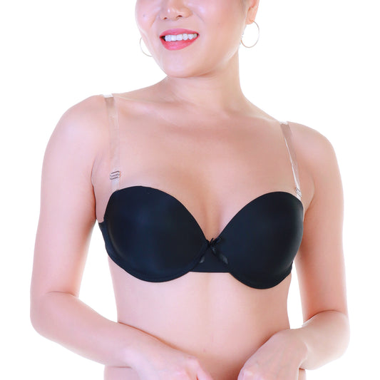 Angelina Wired and Padded Push-Up Bras with Clear Convertible Straps (3 or 6 Pack), #B885