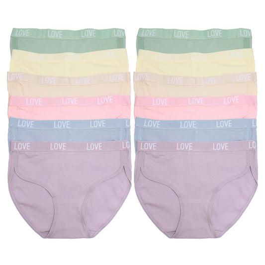 Angelina High-Cut Hiphugger Panties with Love Elastic Waitband (12-Pack), #G6823