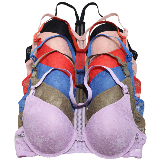 Angelina Lace Racerback Front-Closing Demi-Cup Padded Bras (6-Pack), #B763