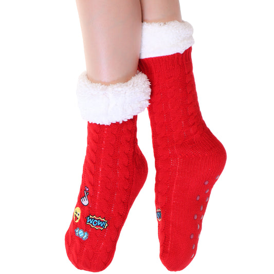 Angelina Winter-Weight Indoor Slipper Socks with Emoji Design (3-Pairs), #WF1916