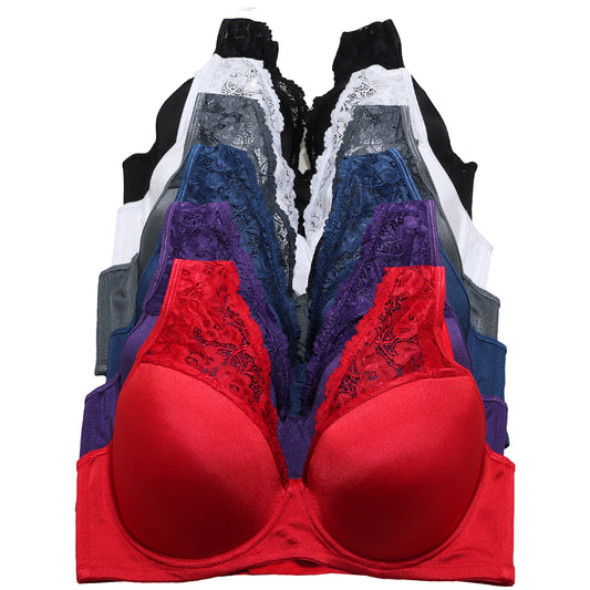 Angelina Wired Padded Extended Size Bras with Lace Accent (6-Pack), #B206