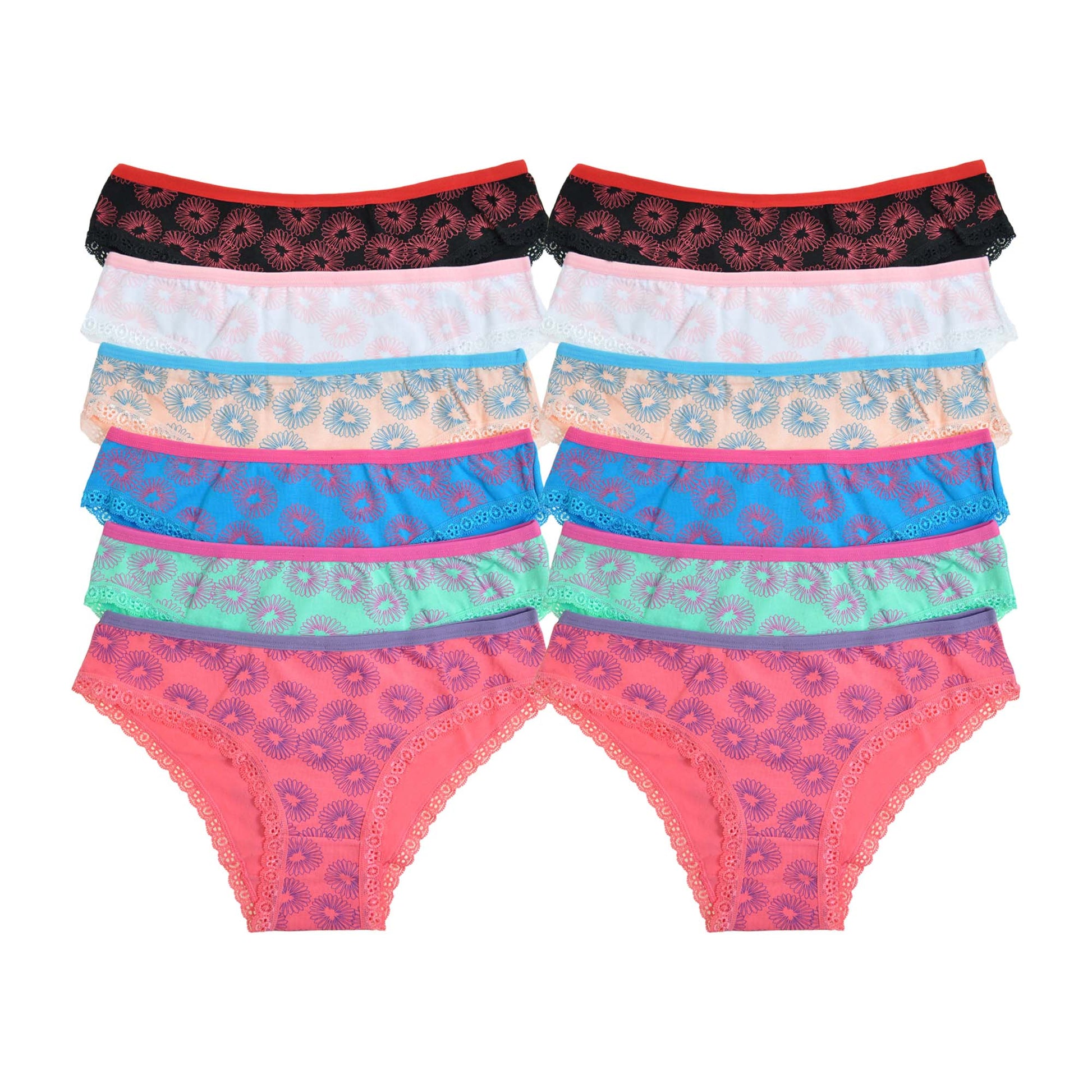Angelina Cotton Bikini Panties with Flower Print and Lace Trim (12-Pack), #G6381