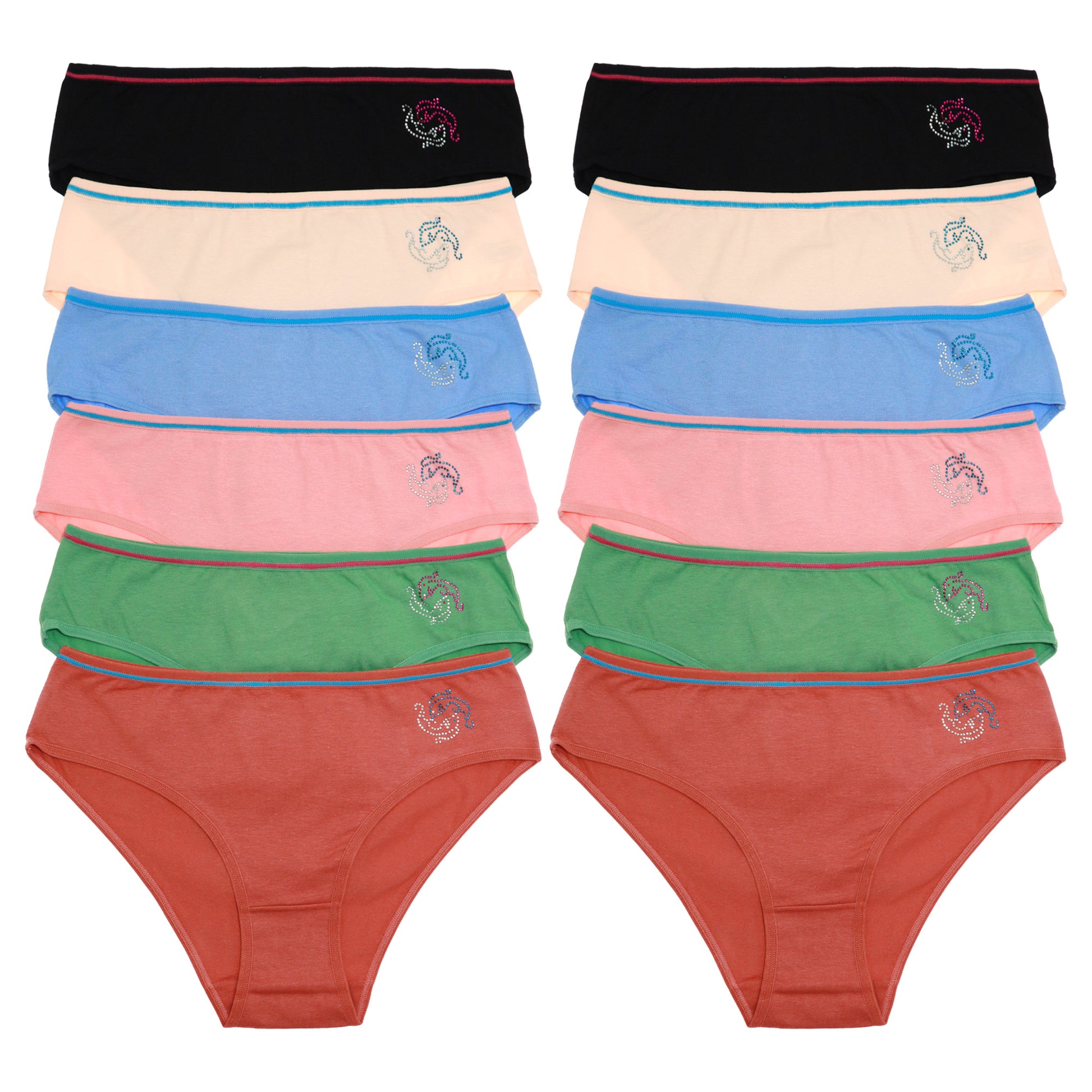 Angelina Cotton Bikini Panties with Rhinestone Detail (12-Pack), #G6814