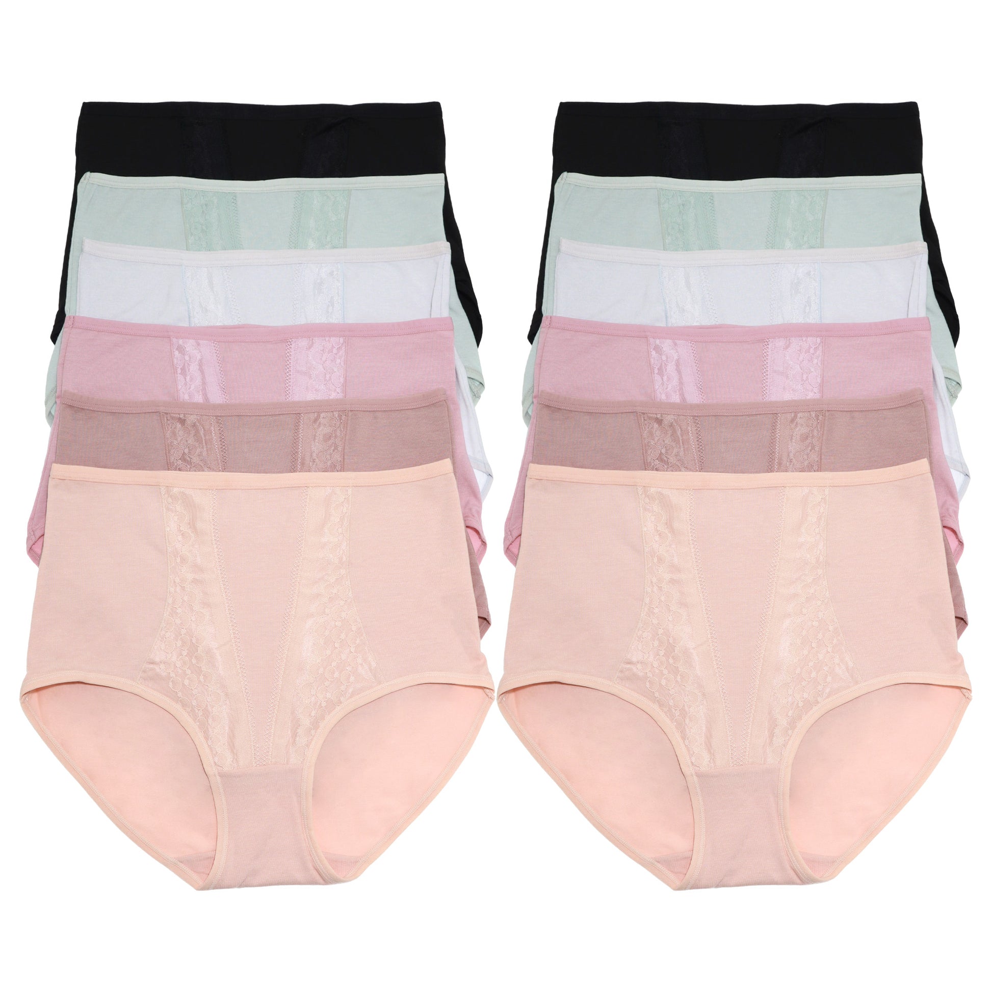 Angelina Cotton Classic High-Rise Briefs with Front Lace Accent (12-Pack), #G6861