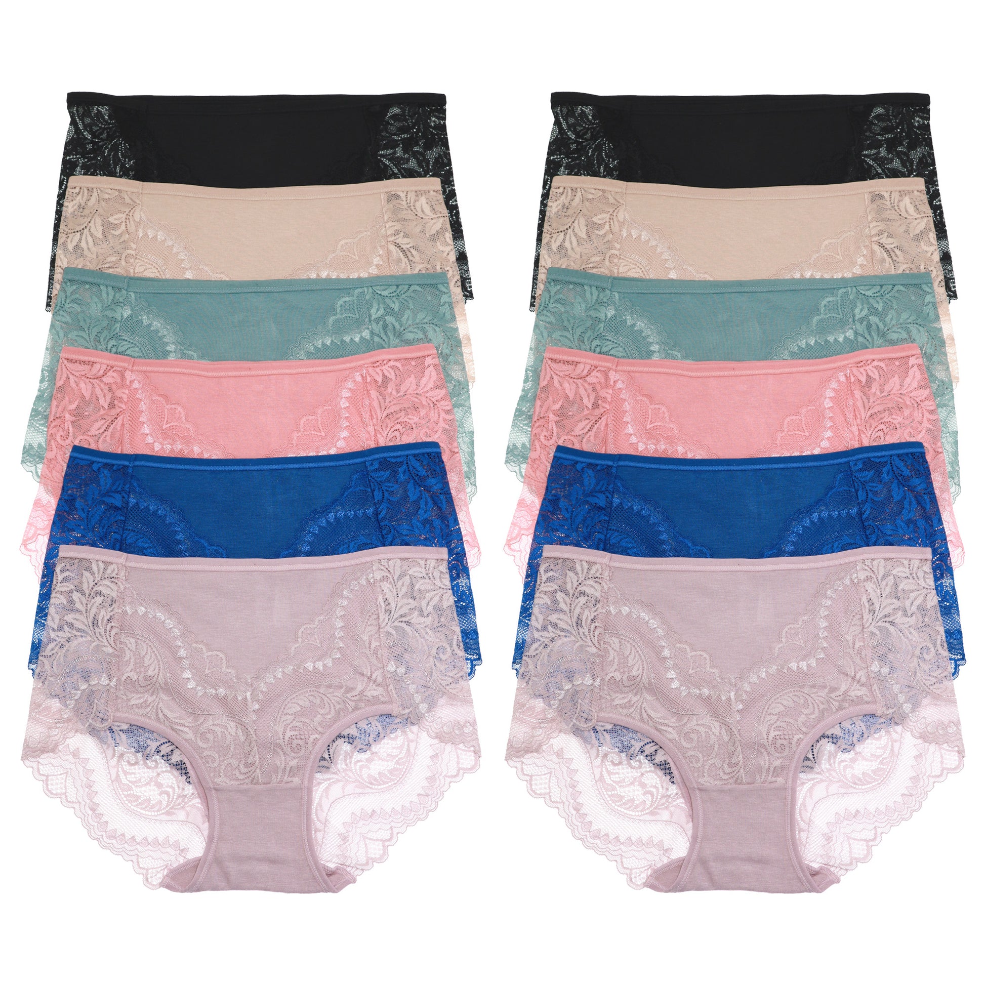 Angelina Cotton High-Rise Brief Panties with Lace Accent (12-Pack), #G6783