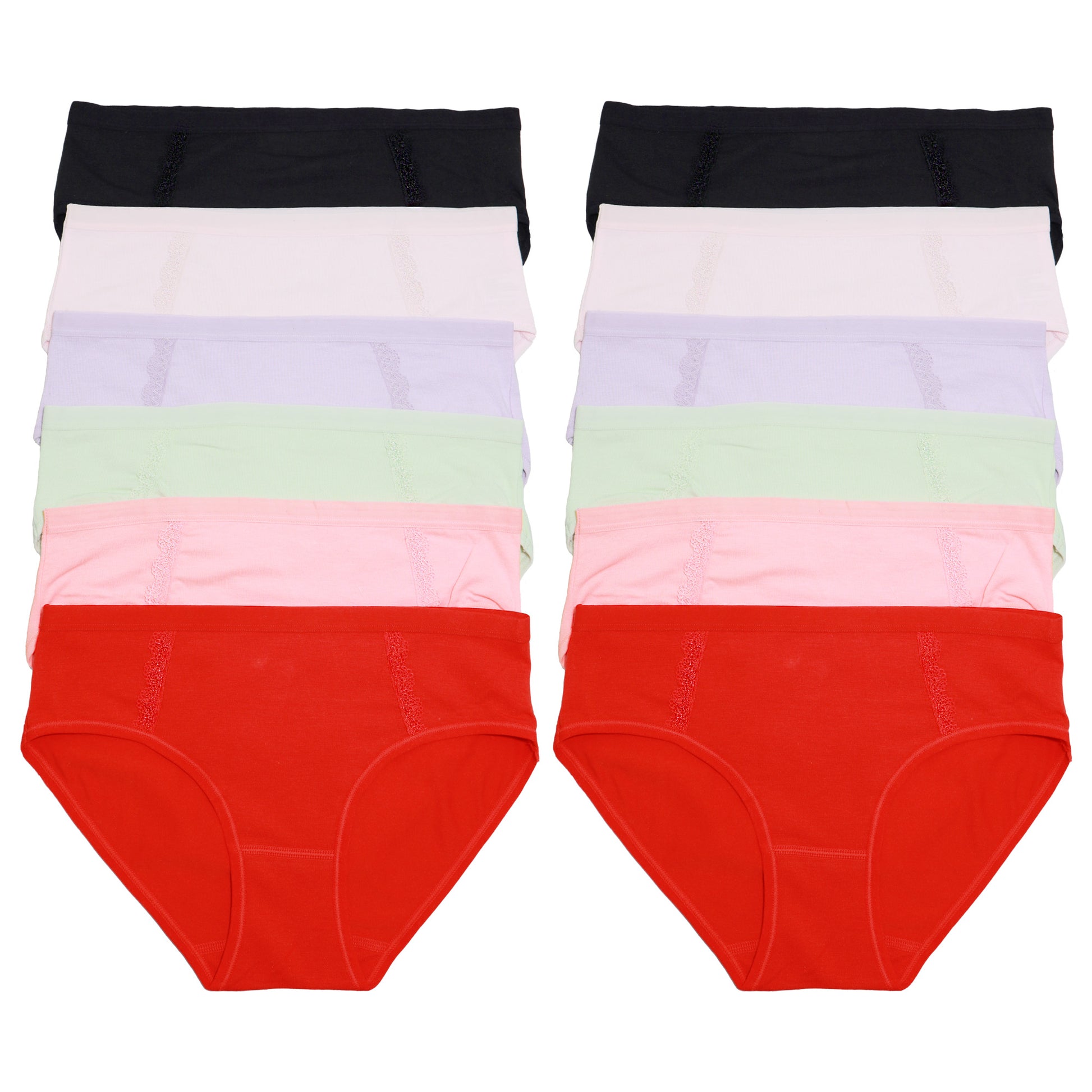 Angelina Cotton Hiphugger Panties with Lace Accent (12-Pack), #G6760