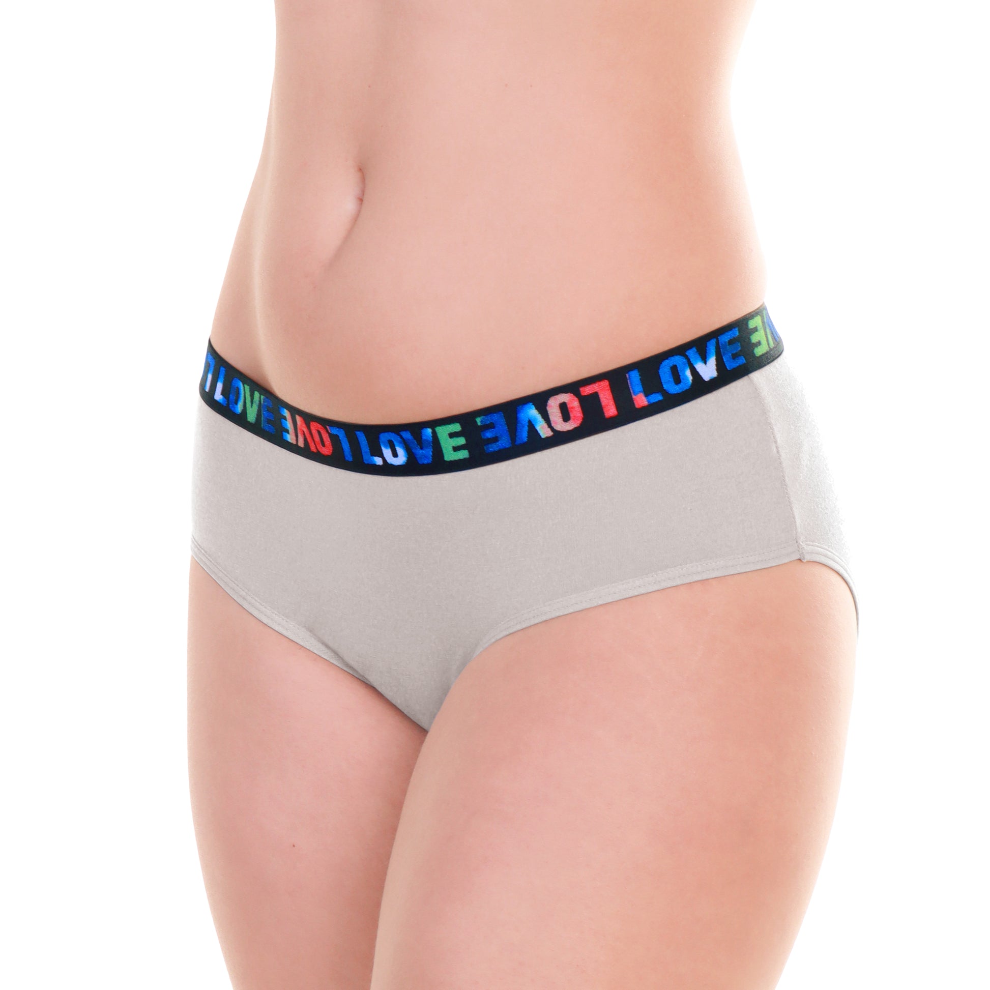 These stylish hipster panties feature a playful "LOVE" waistband in a vibrant, eye-catching design. The elastic waistband is expertly crafted to retain its shape and fit, ensuring lasting comfort and support. Designed for ultimate coverage, these panties offer full back coverage for a confident and secure feel. Available in a value pack bundle of assorted colors. General sizing guide corresponding to US pant size: Small (0-2), Medium (4-6), Large (8-10), X-Large (12-14), 2X-Large (14-16), 3X-Large (16-18). Made of 92% Cotton and 8% Spandex. Machine wash in a lingerie laundry bag, line dry. For better results, hand wash.