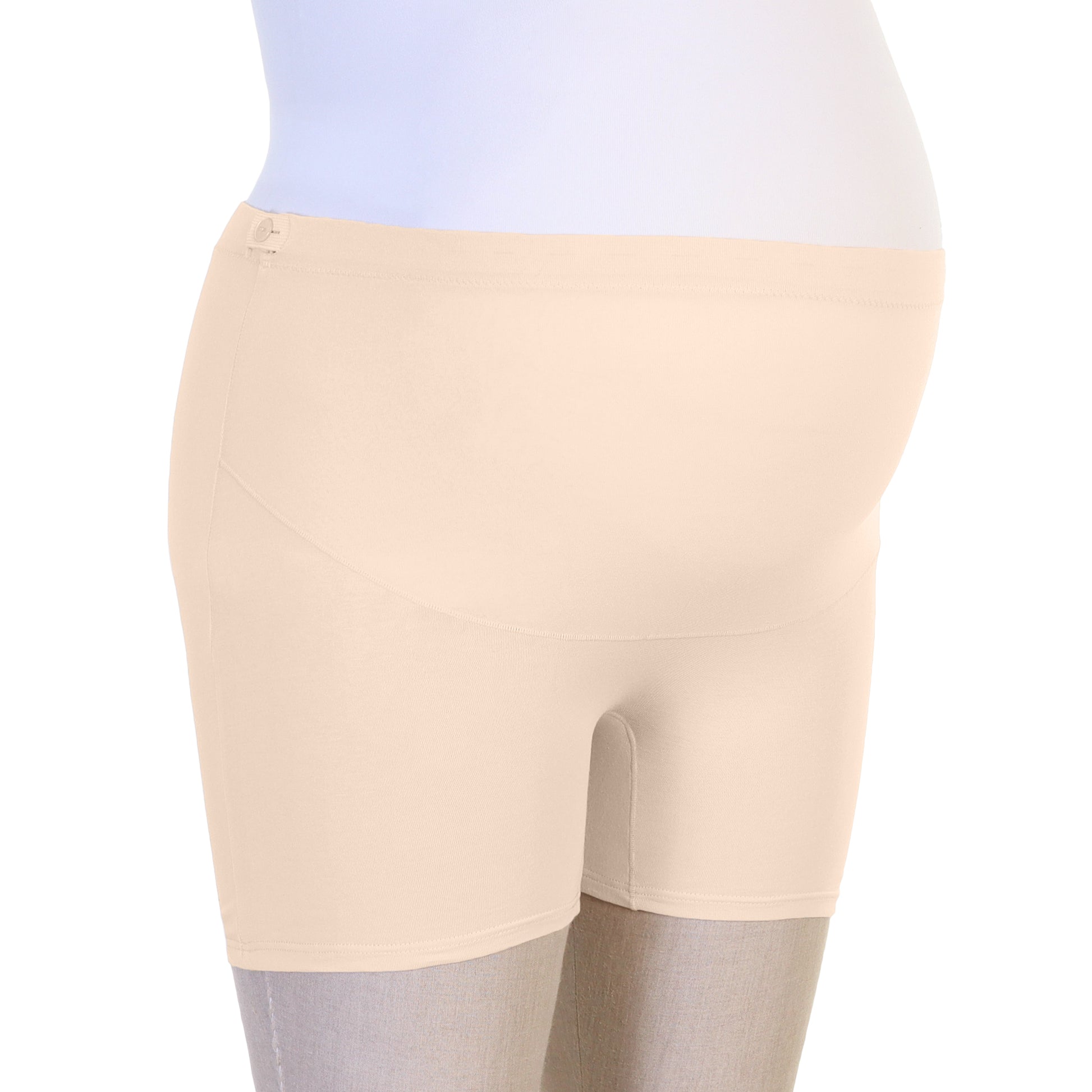 These maternity shorts are the perfect everyday essential item. They are made with an adjustable elastic waistband to accommodate your growing belly. The soft and breathable modal fabric is soft against the skin and prevents digging in, perfect for all day wear. They can be worn as underwear, loungewear or safety pants underneath short skirts. Available in black and beige. Comes in sizes S/M and L/XL. Made of 92% Cotton and 8% Spandex. Machine wash, tumble dry low.