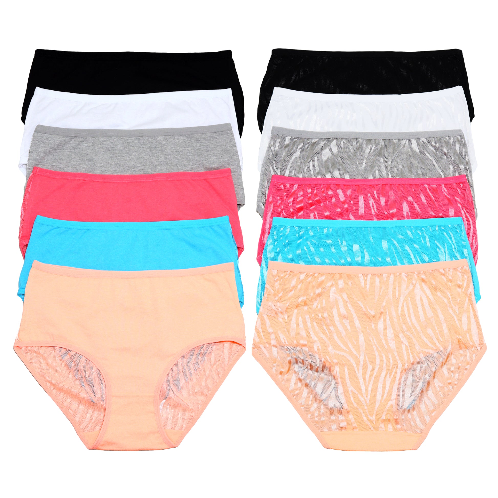 These classic mid-rise briefs are made with a breathable cotton fabric and feature a zebra pattern mesh design on the back. The mid-rise waist provides full back coverage that is comfortable for everyday wear. Available in a value pack bundle of assorted colors. General sizing guide corresponding to US pants size: Small (0-2), Medium (4-6), Large (8-10), X-Large (12-14). Made of 92% Cotton and 8% Spandex. Machine wash in lingerie laundry bag, line dry. For better results, hand wash.