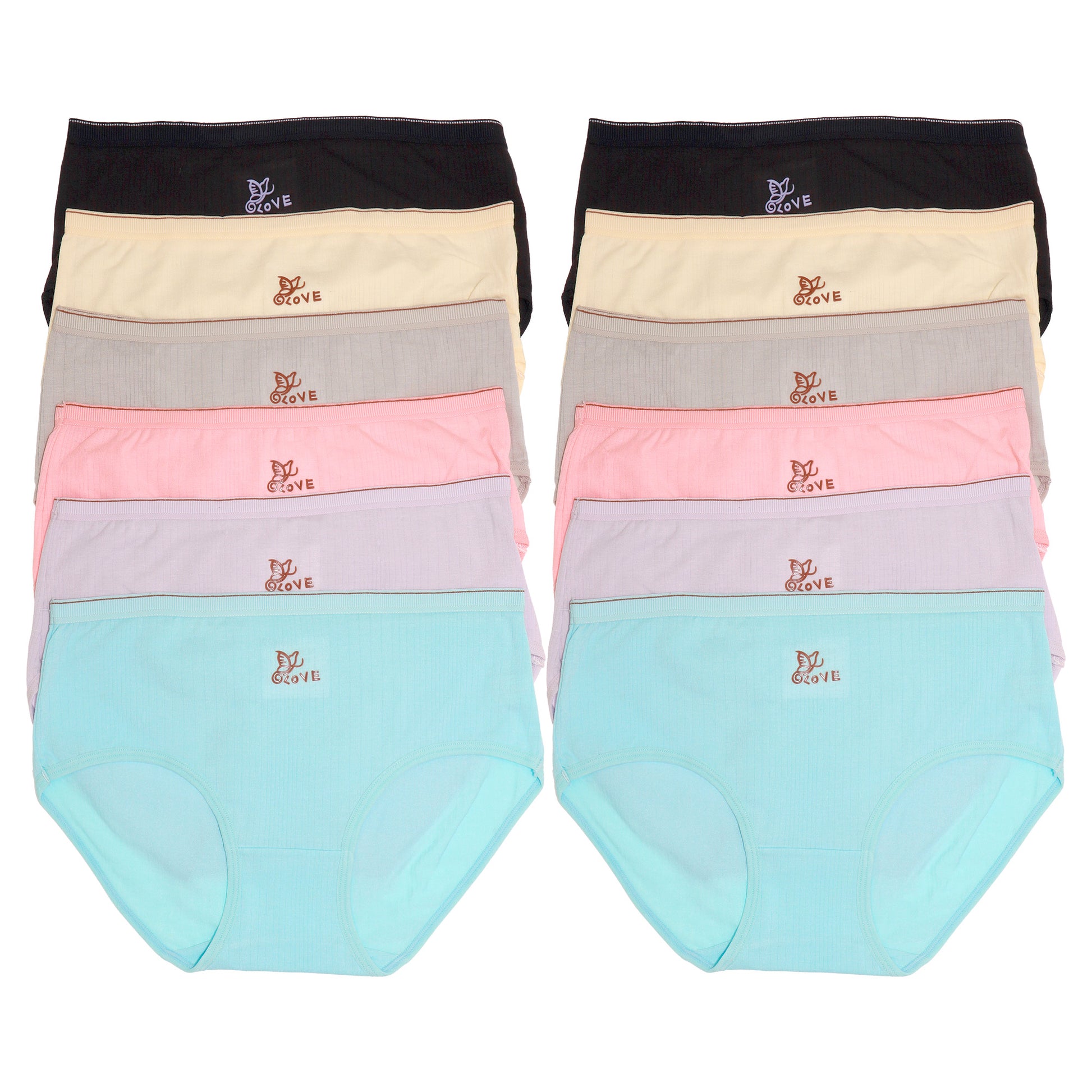Angelina Cotton Ribbed Hiphugger Panties with 3D Detail (12-Pack), #G6862