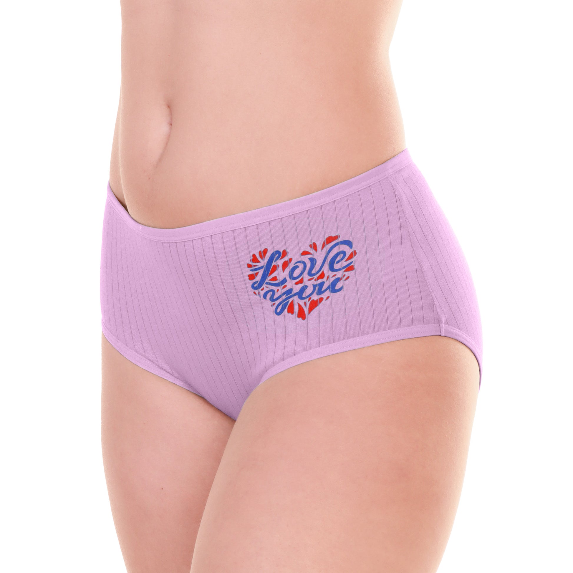 Feel the love with these comfortable and stylish mid-rise brief panties. The ribbed design with a heart detail adds a touch of romance. These mid-rise briefs come with a soft, cotton gusset ensures all-day comfort and provide full back coverage for any range of motion. Available in a assorted colors. General sizing guide corresponding to US pants size: Small (0-2), Medium (4-6), Large (8-10), X-Large (12-14). Made of 92% Cotton and 8% Spandex. Machine wash in a lingerie laundry bag, line dry. For better results, hand wash.