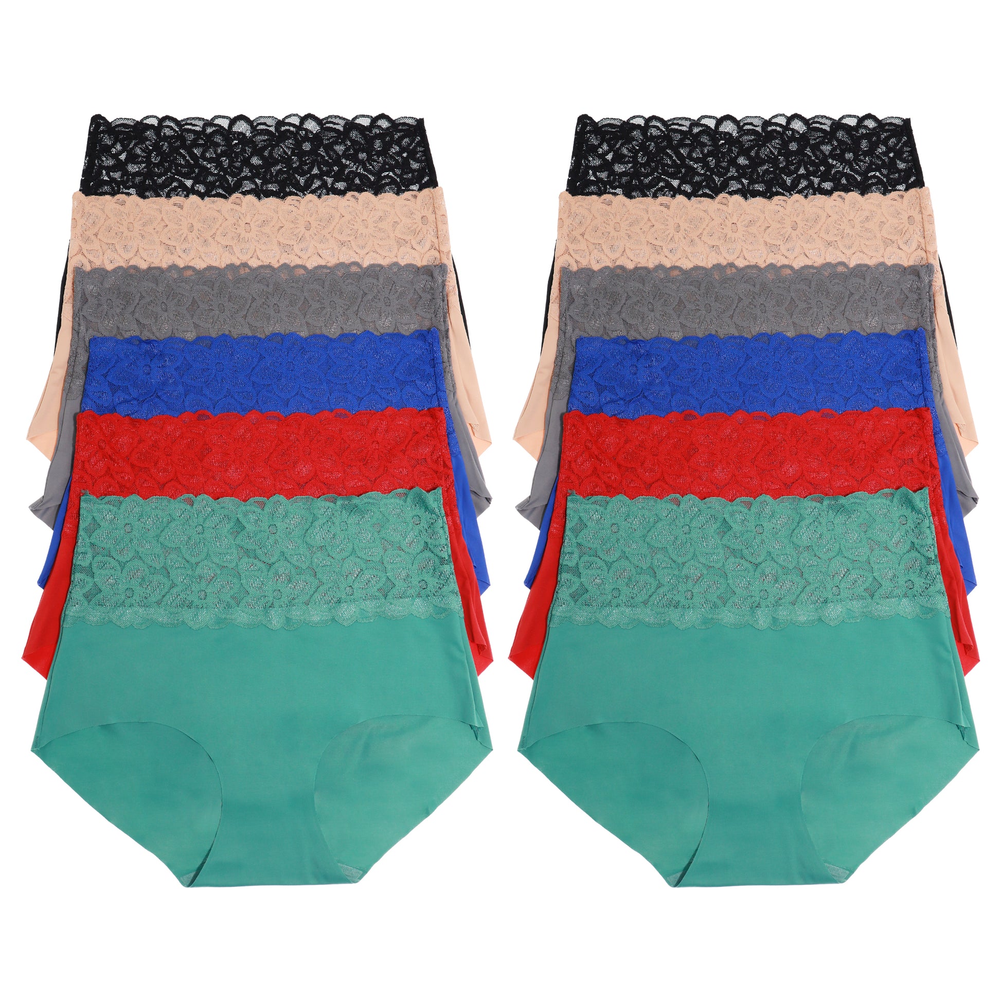 Angelina Laser Cut High-Rise Briefs with Lace Front Waistband Detail (12-Pack), #G6772