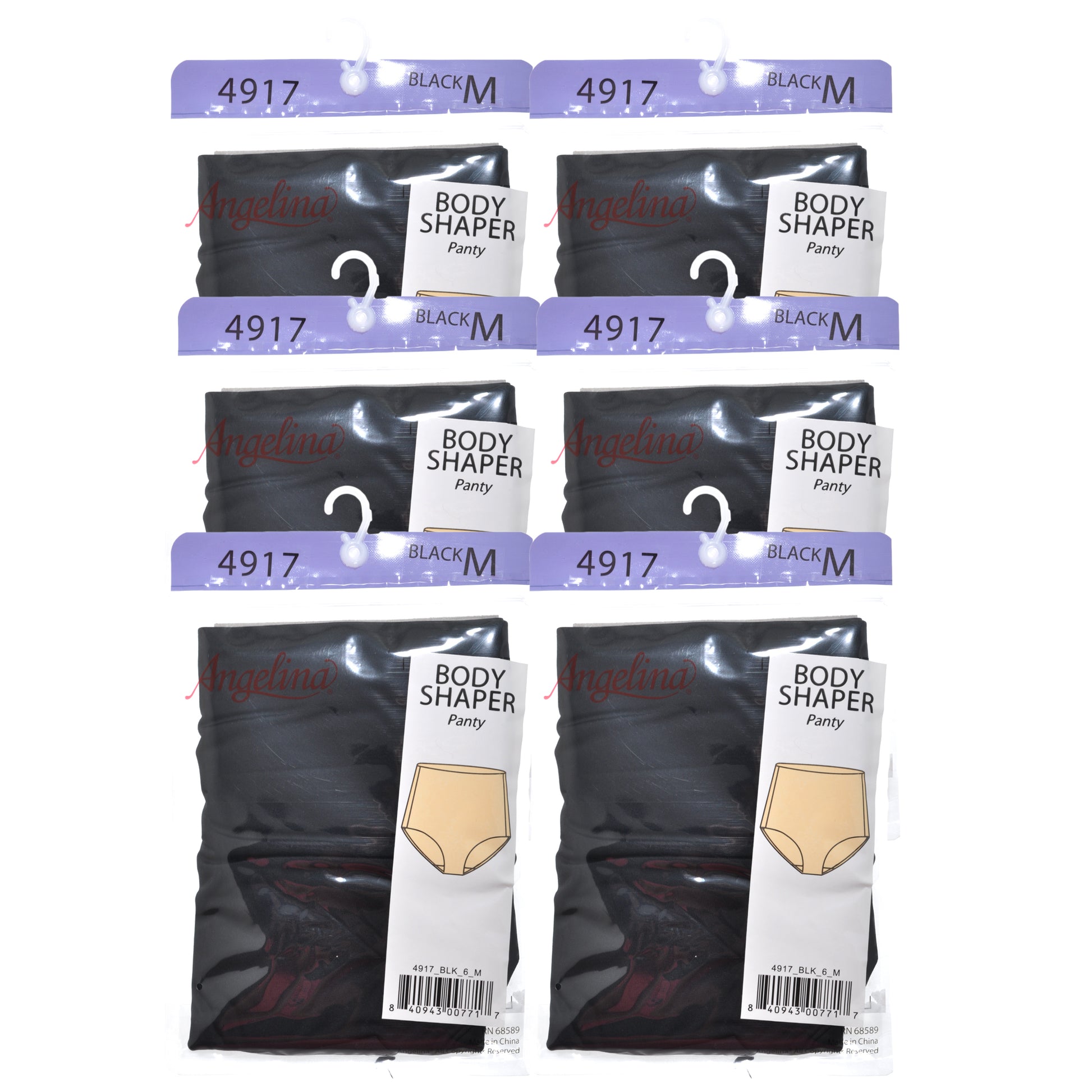 Angelina Mid-Rise Waist Body Shaper Panties (6-Pack), #4917