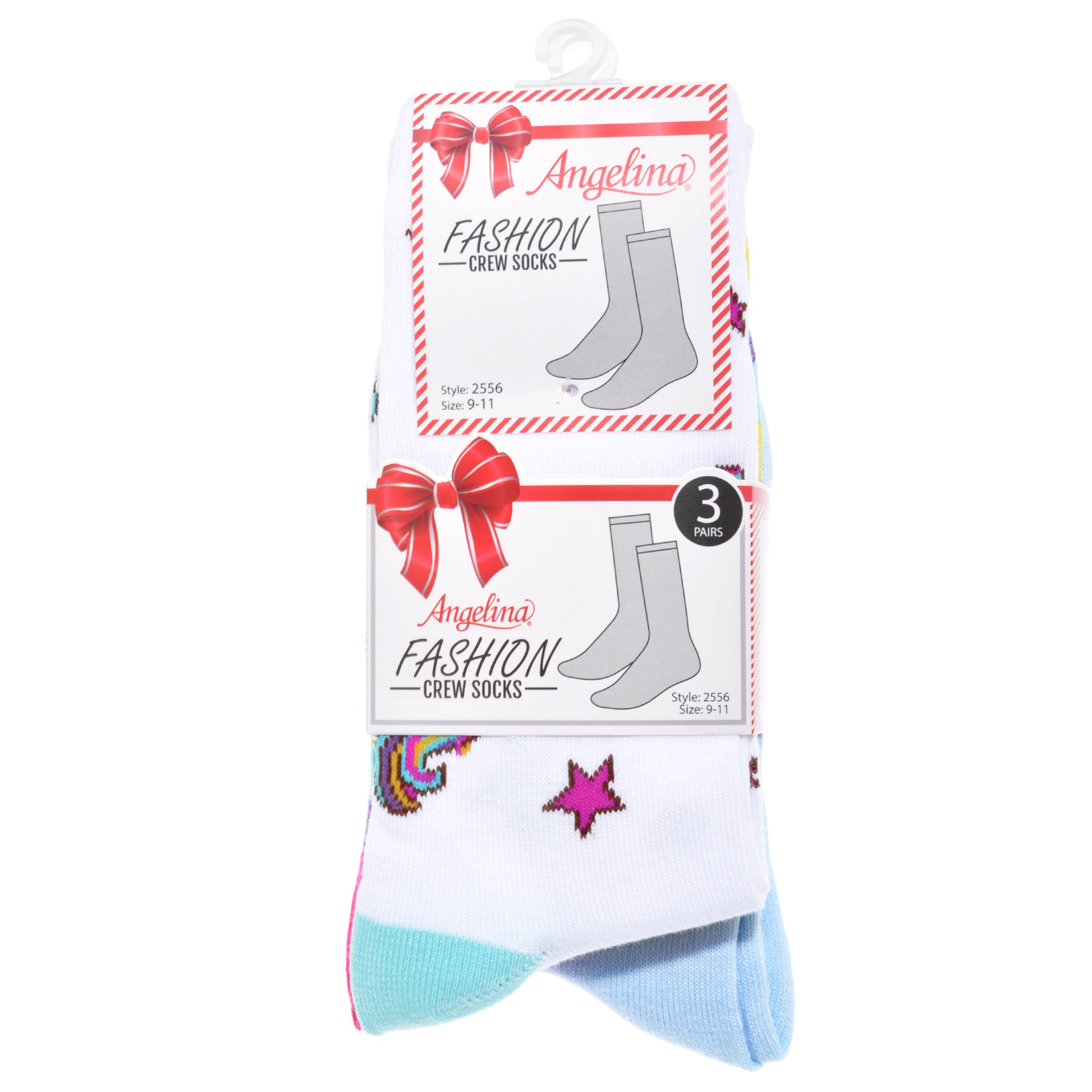 Angelina Novelty Unicorn Crew Socks (3-Pairs), #2556