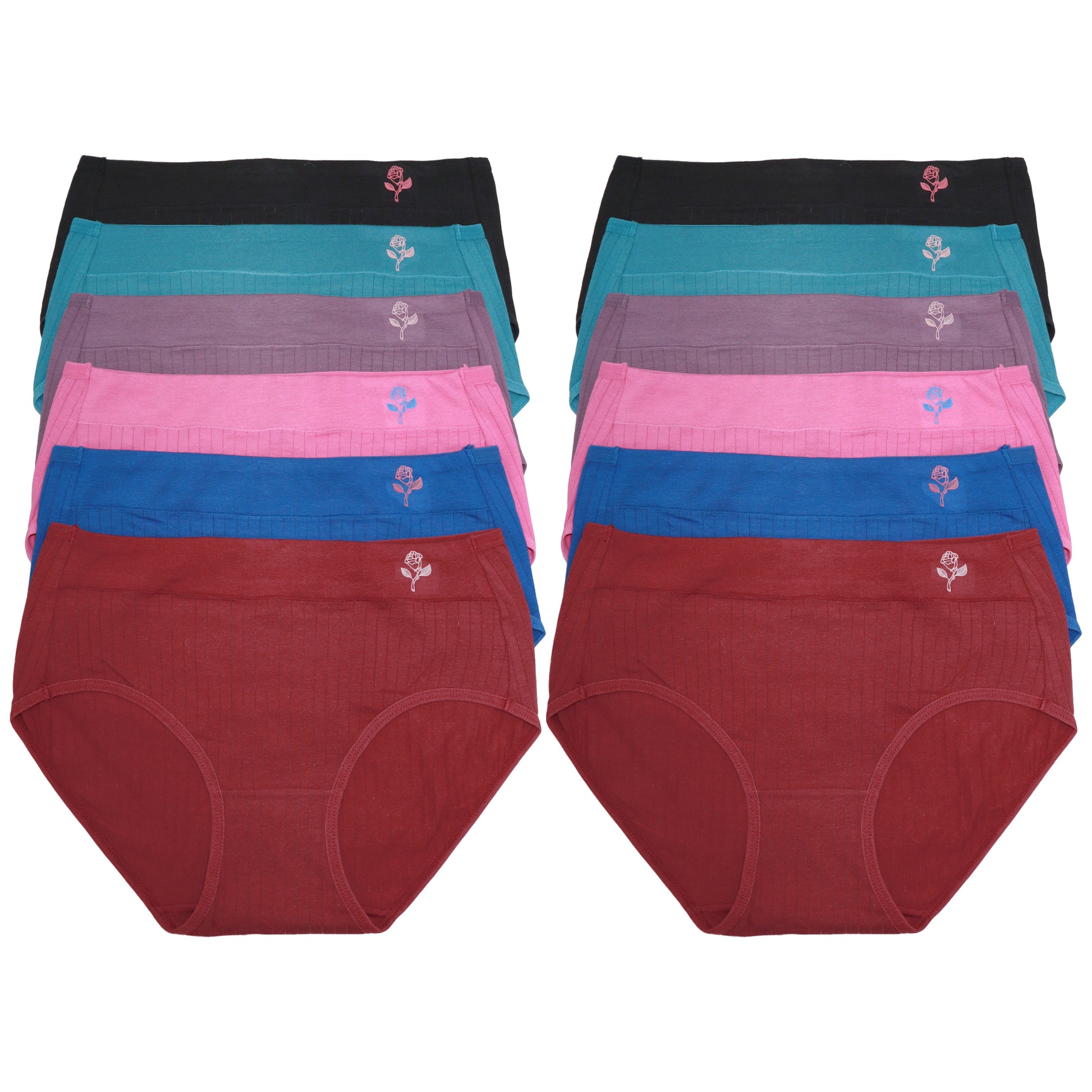 Angelina Ribbed Hiphugger Panties with Rose Detail (12-Pack), #G6912