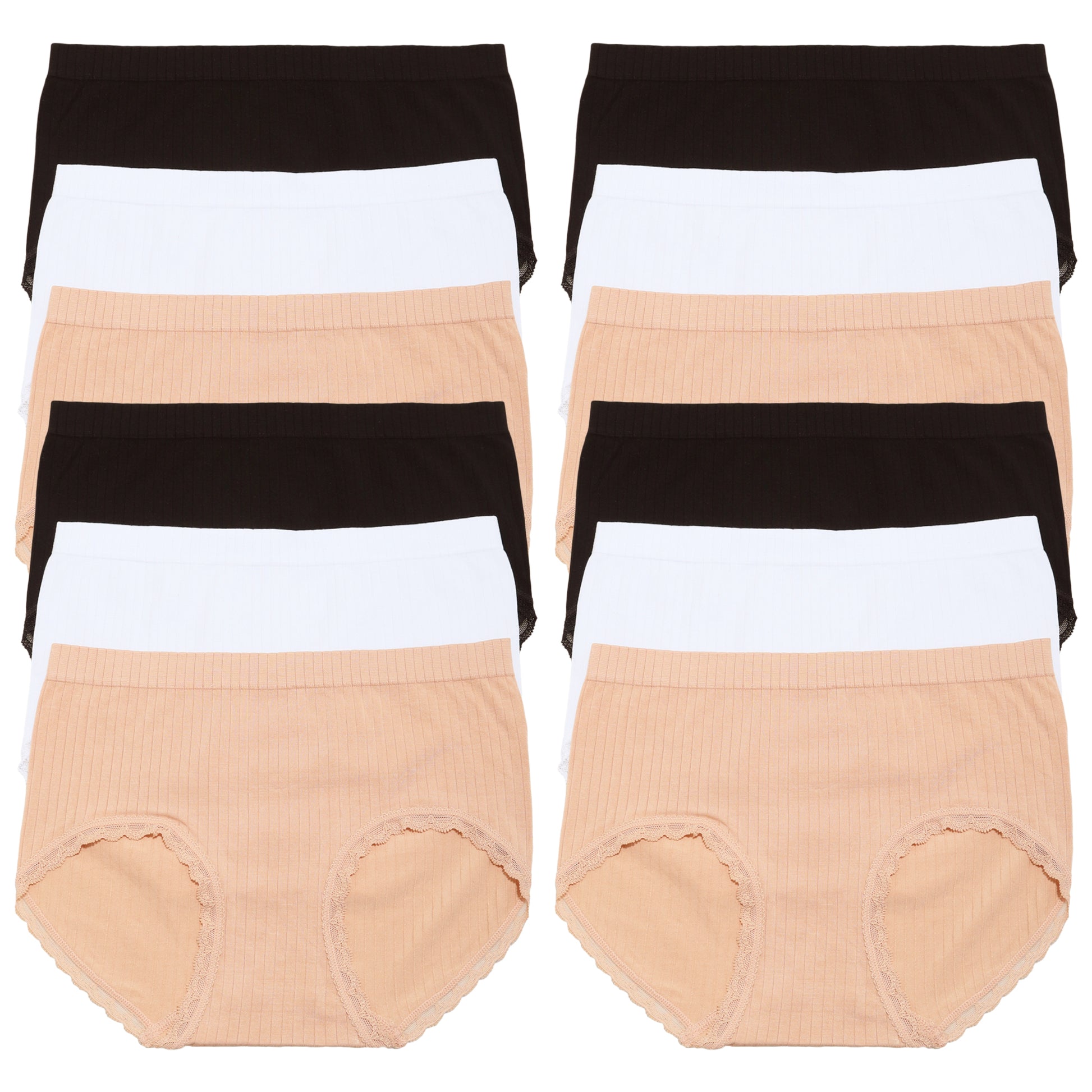 Angelina Seamless Cotton Hiphugger Panties with Lace Accent (12-Pack), #SE908