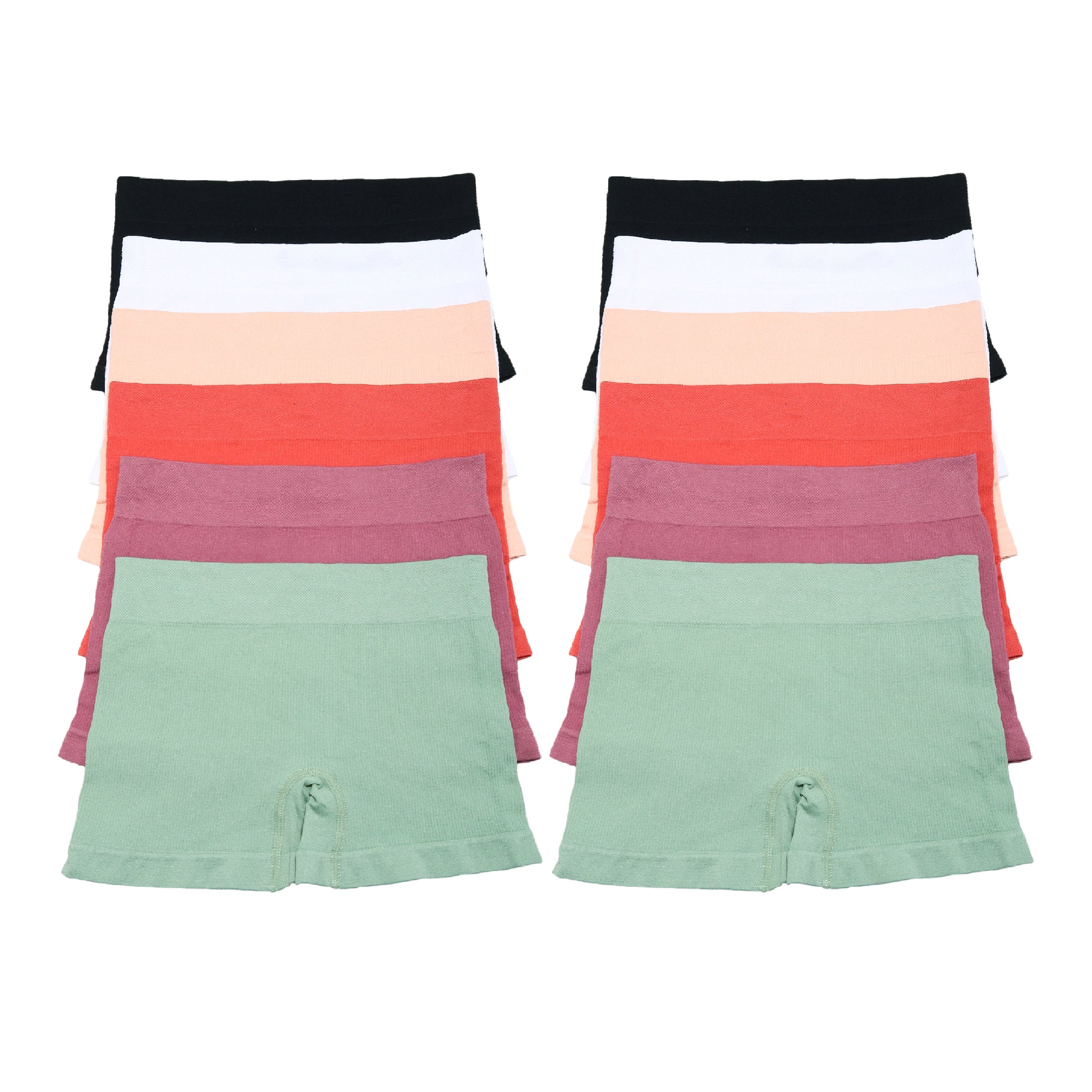 These seamless boyshort panties are made with an extra wide waistband and provide full back coverage. The ultra stretchy material and seamless construction is comfortable for everyday wear. Available in a value pack bundle of assorted colors. Matching bralette sold separately. Comes in S/M and L/XL. Made of 90% Nylon and 10% Spandex. Machine wash in lingerie laundry bag, line dry. For better results, hand wash.