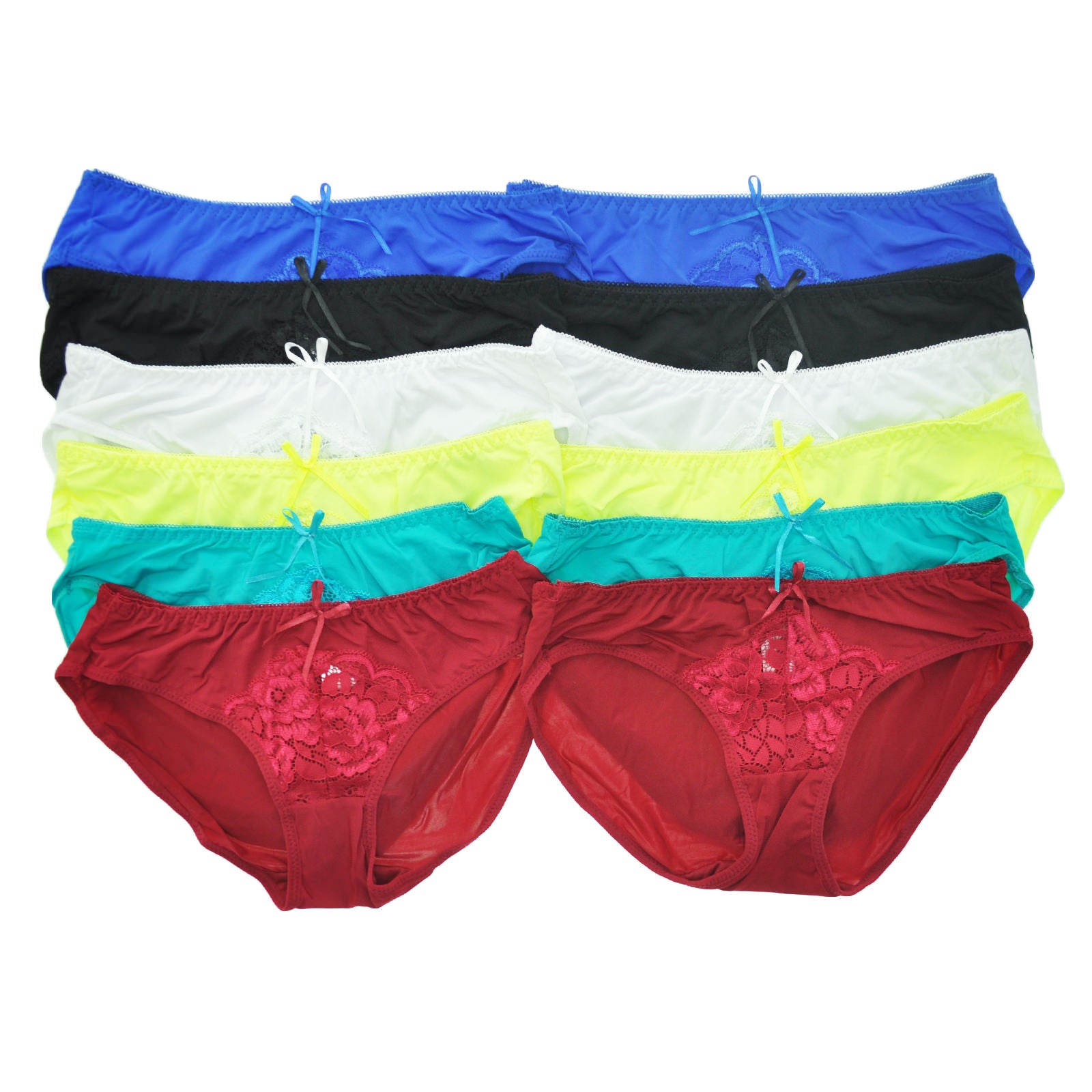 Angelina See-Through Lace Centered Hip-Hugger Panties (12-Pack), #B666
