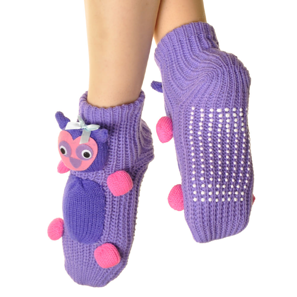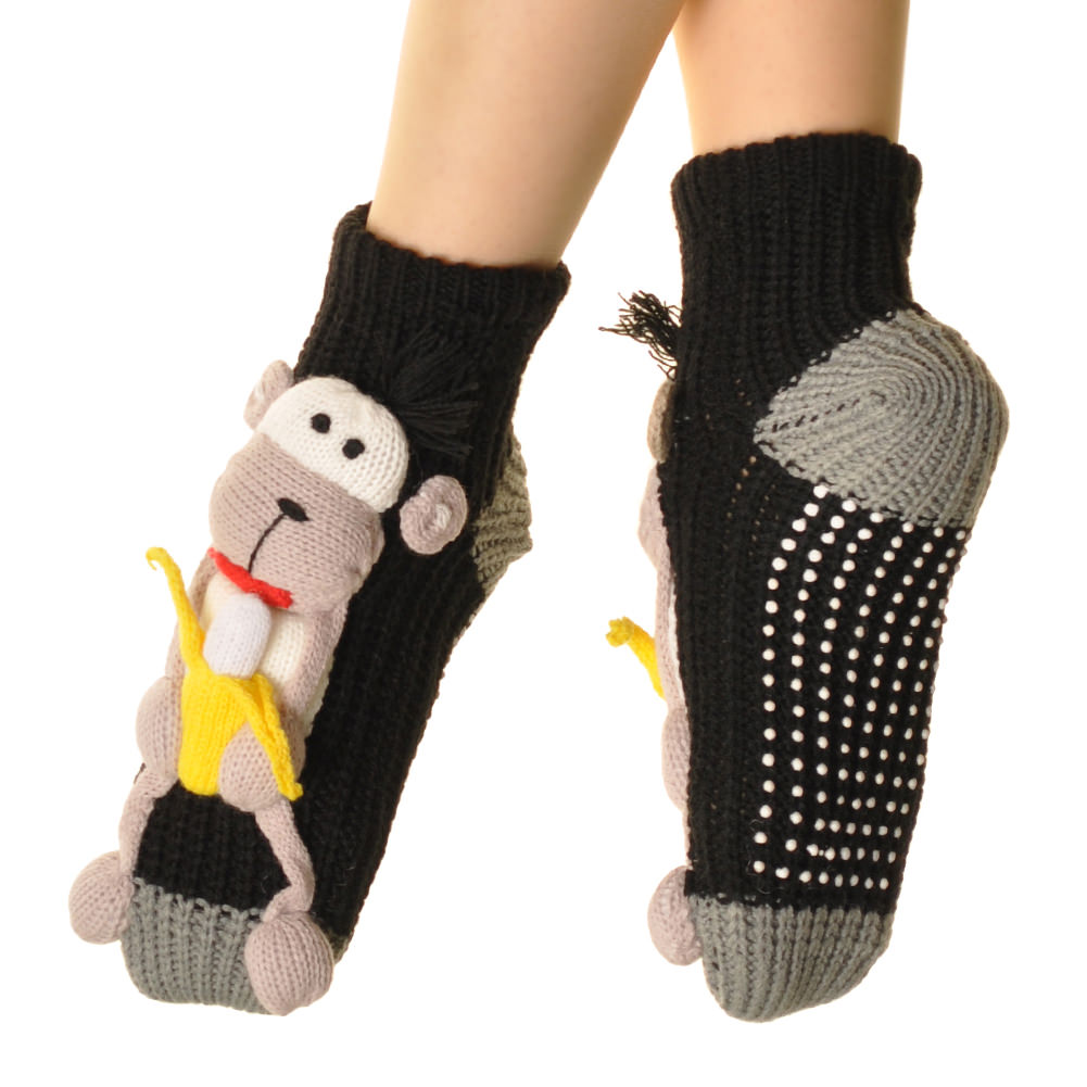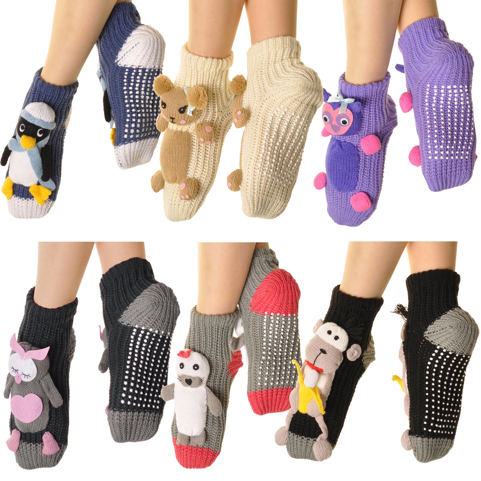 Angelina Snuggly Knit Slip-Resistant 3D Monster Slipper Socks (6 or 12 Pairs), #WF1990