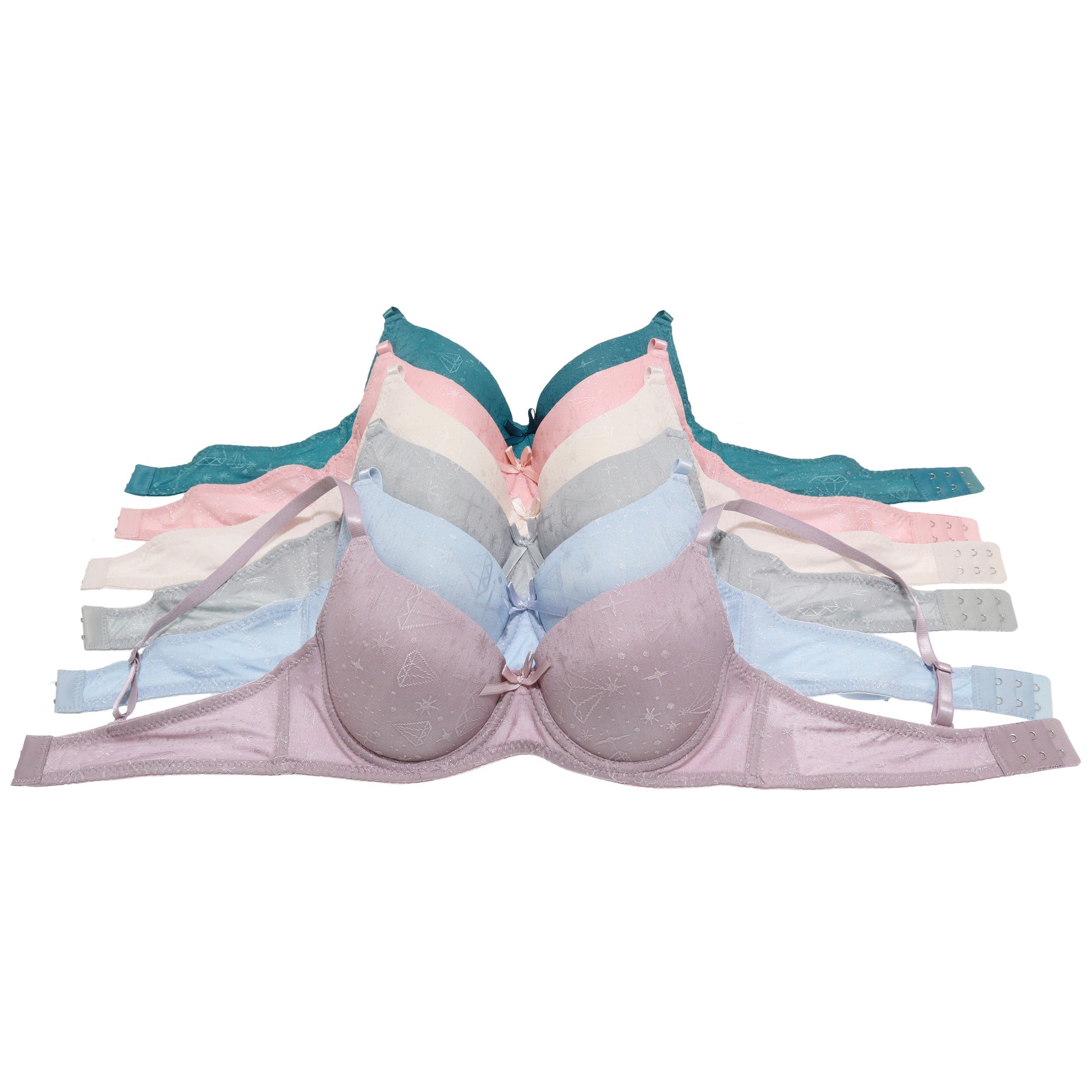 Angelina Wired Bras with Embroidered Diamond Design (6-Pack), #B376