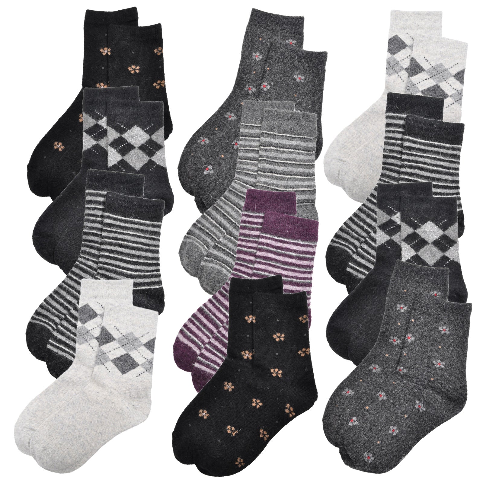 Angelina Wool-Blend Half-Crew Winter Socks (12-Pairs), #WF1998