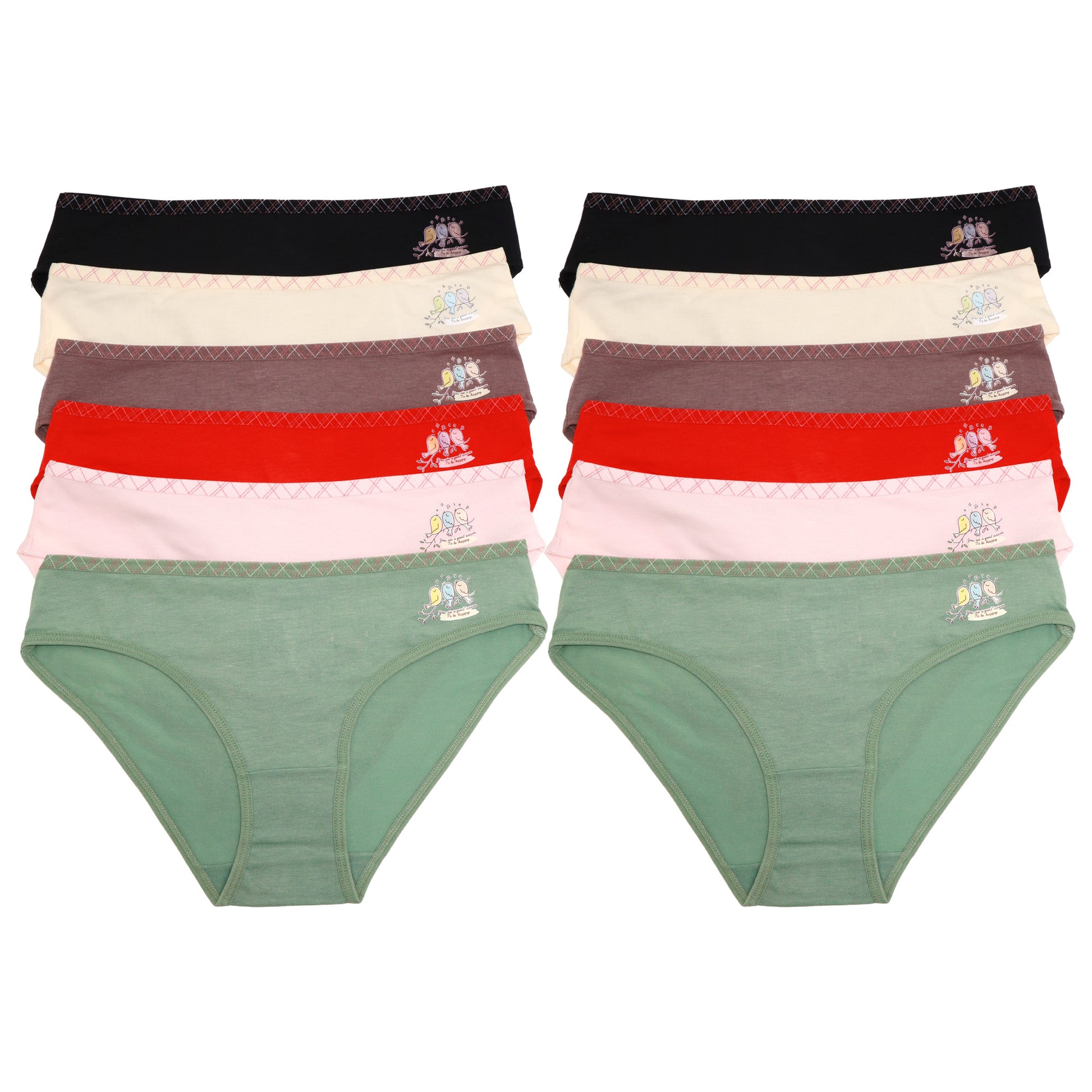 Cotton Ribbed Bikini Panties with Contrast Waistband (12-Pack), #G6856