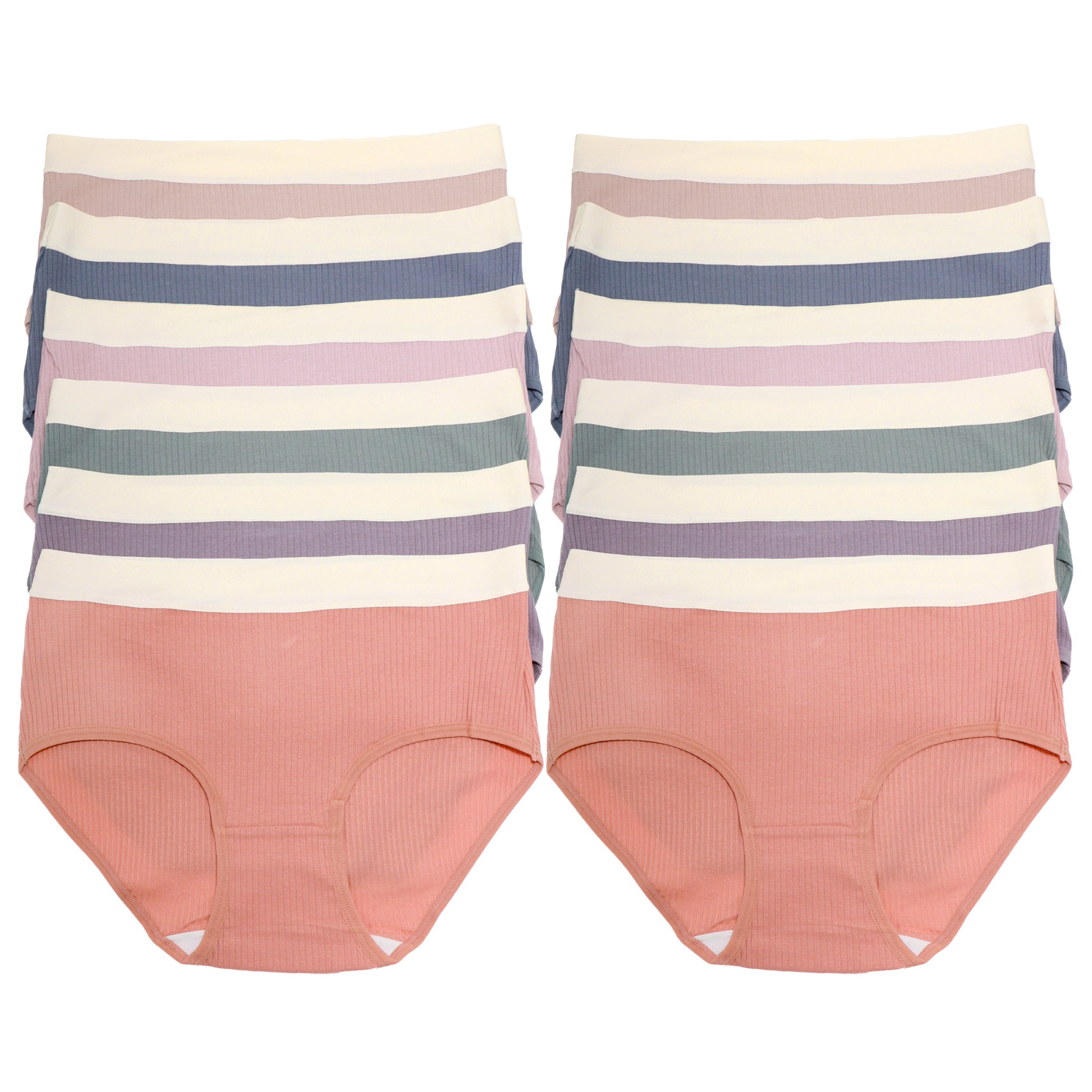 Elevate your everyday wardrobe with these comfortable and stylish hiphugger panties. The cotton ribbed design offers a soft and stretchy fit, while the laser-cut waistband ensures a smooth, no-show look. These panties provide full back coverage for any range of activity. Available in a value pack bundle of assorted colors. General sizing guide corresponding to US pant size: Small (0-2), Medium (4-6), Large (8-10), X-Large (12-14). Made of 92% Cotton and 8% Spandex. Machine wash in a lingerie laundry bag, line dry. For better results, hand wash.