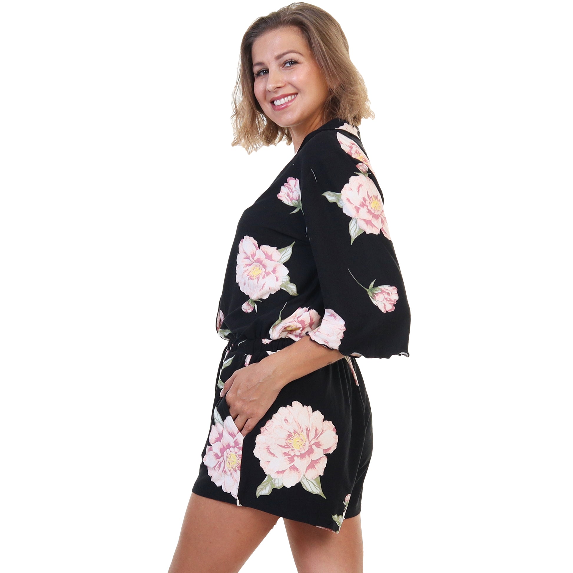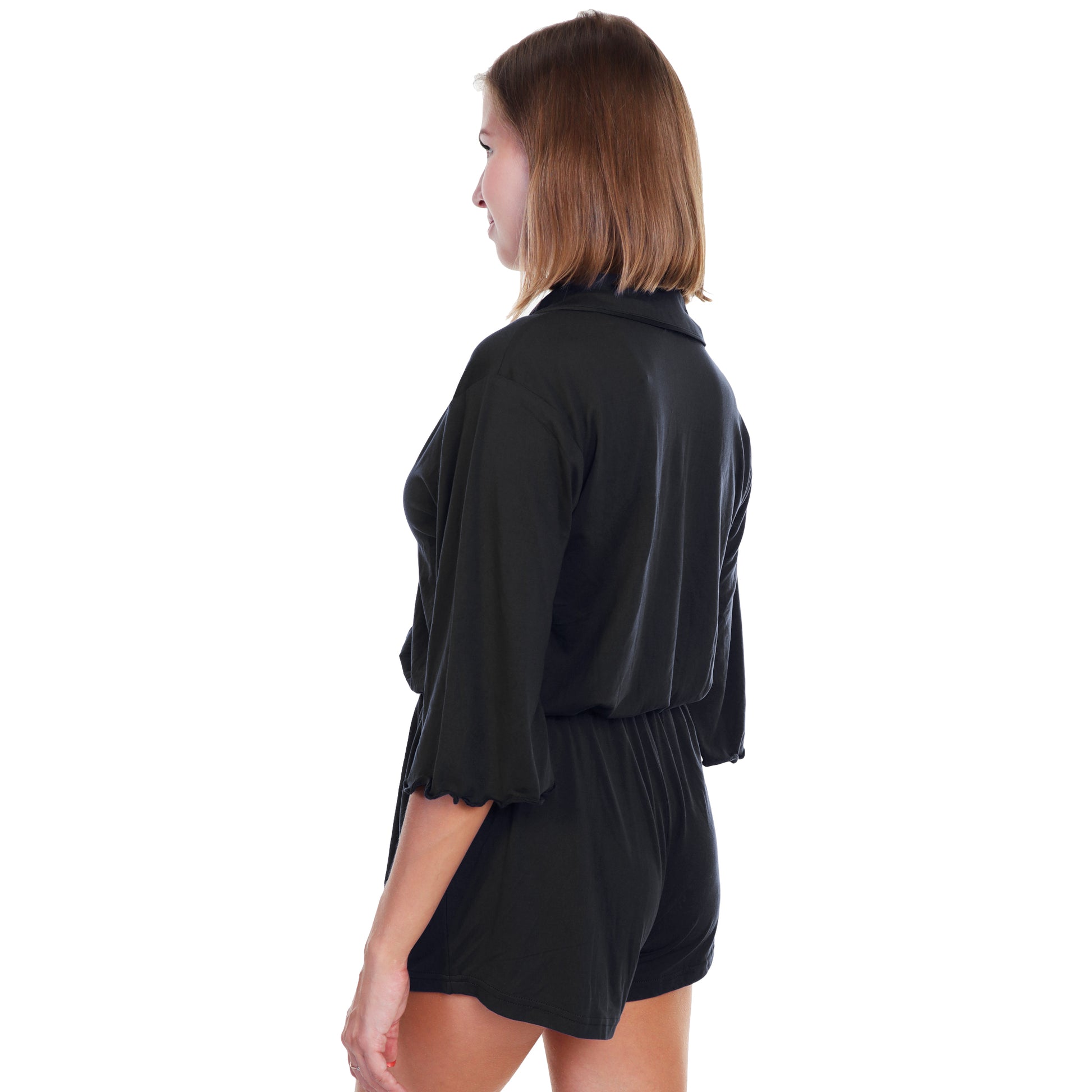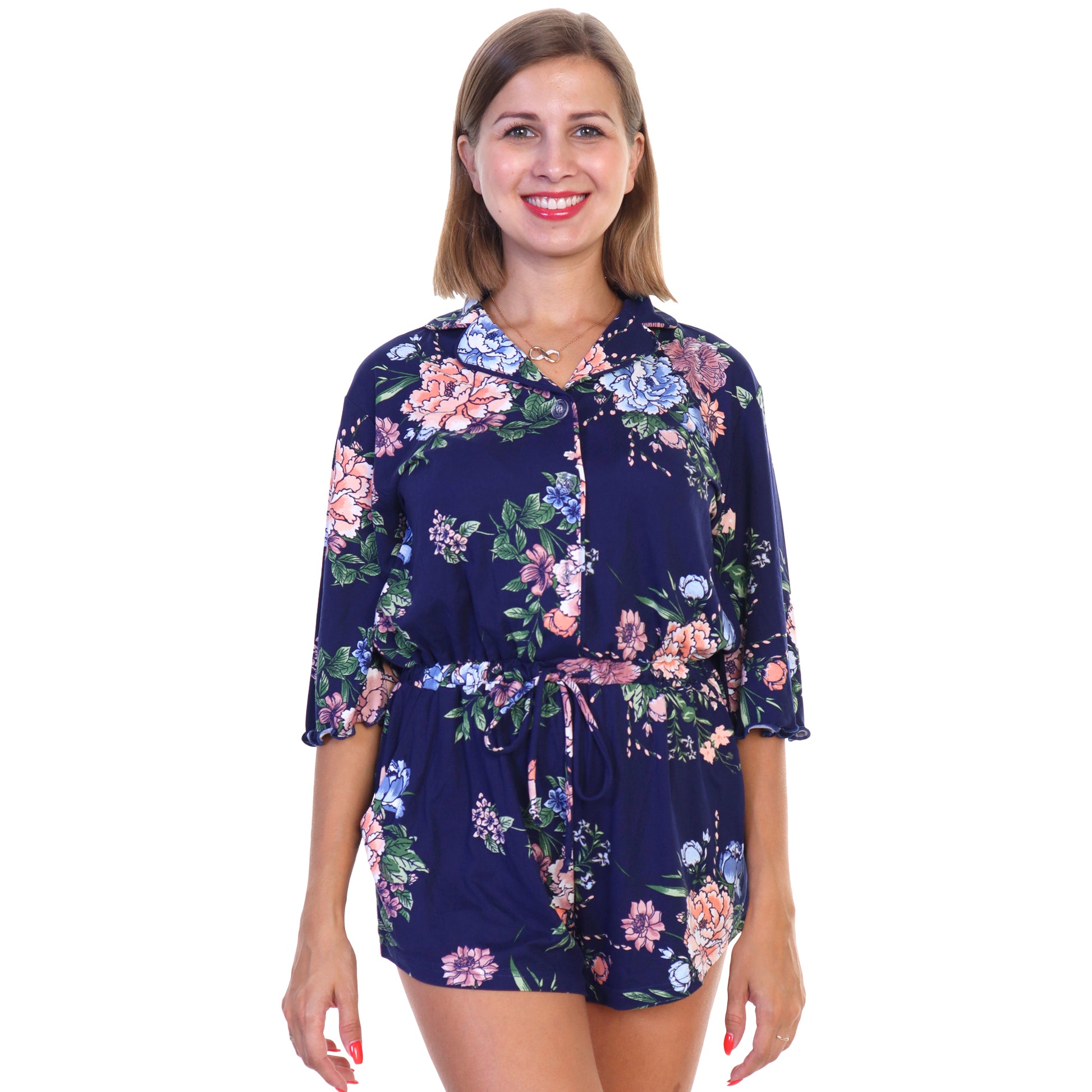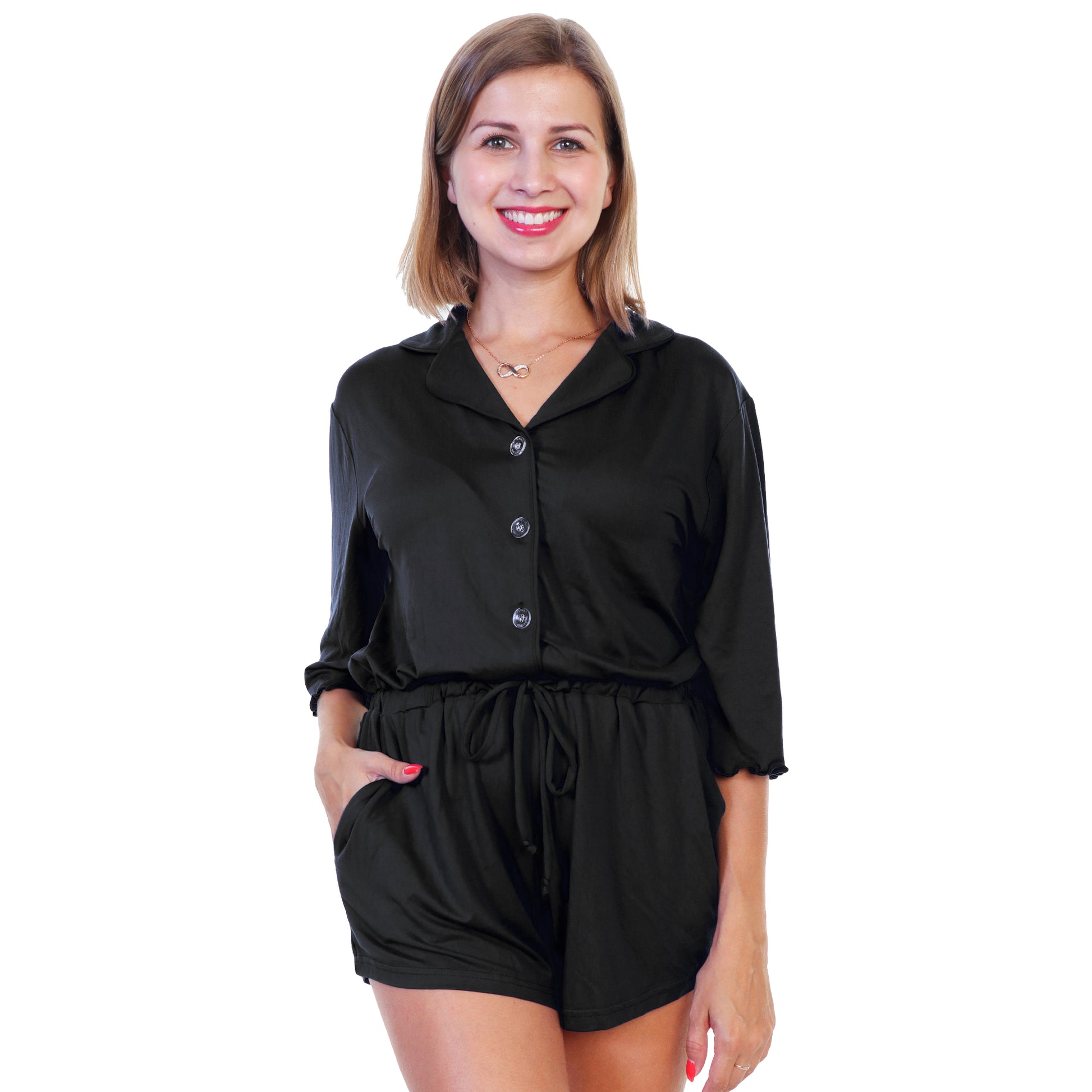 Relax in style with these brushed microfiber romper pajamas that are ideal for wearing around the house as lounge wear or sleepwear. Dress them up or dress them down for casual everyday wear or as a swimsuit cover-up. The short-sleeved bodice features a drawstring closure for ease of wear and comes with an elastic drawstring waistband for an adjustable fit. The shorts come with 2 side pockets for storing your phone or other small items. The relaxed fit and ultra soft, brushed microfiber fabric provides all day comfort. Comes in sizes S, M, L, XL, 2X. Machine wash gentle cycle, line dry. For better results, hand wash.