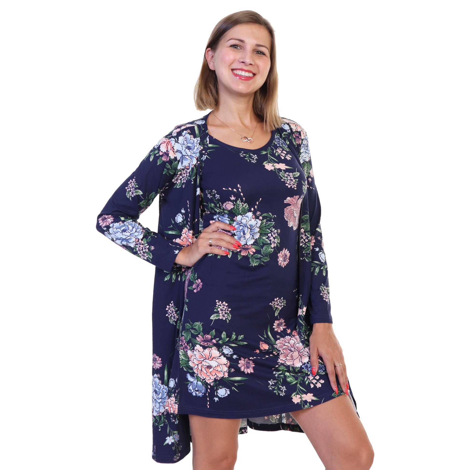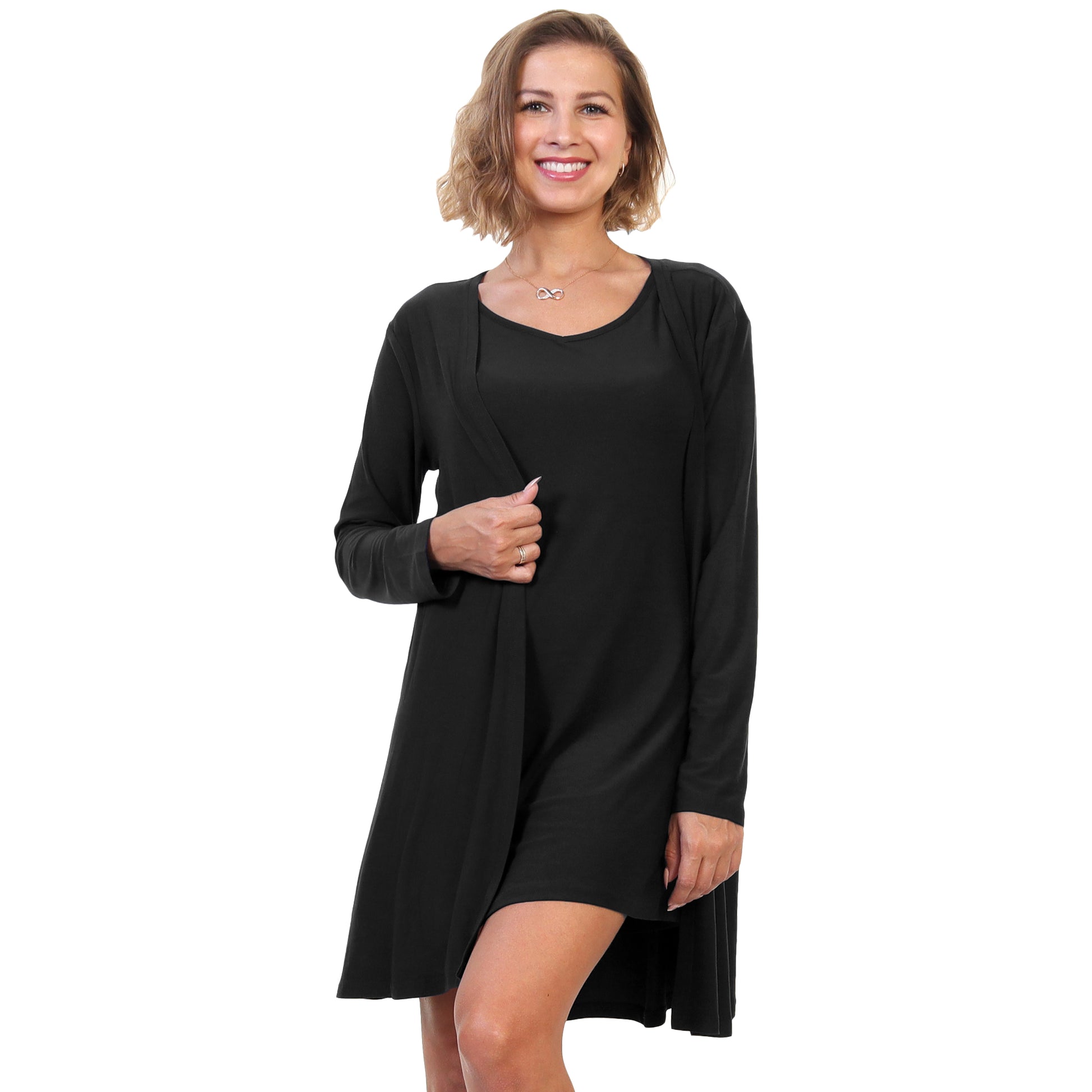Brushed Microfiber Nightgown and Cardigan Lounge Wear Set (Sold Separately )