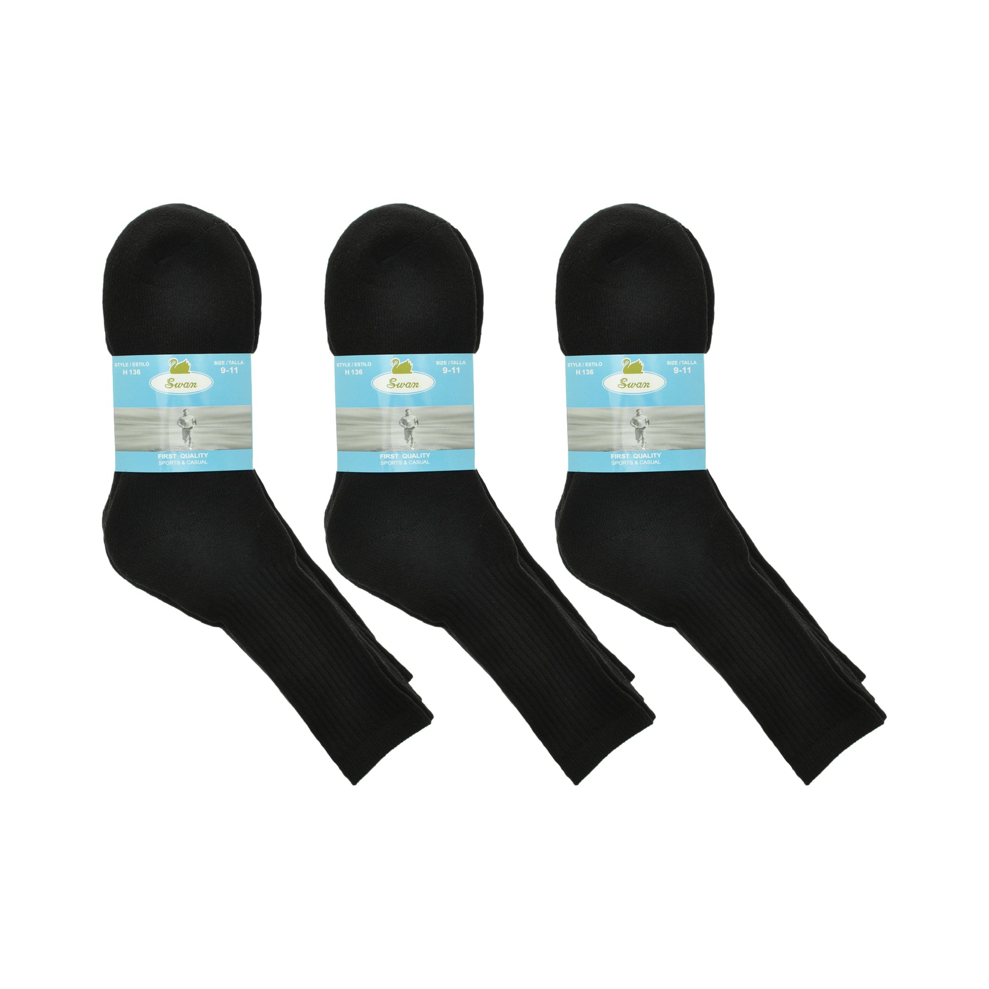 Swan Unisex Black Sport Socks (12-Pairs), #H136