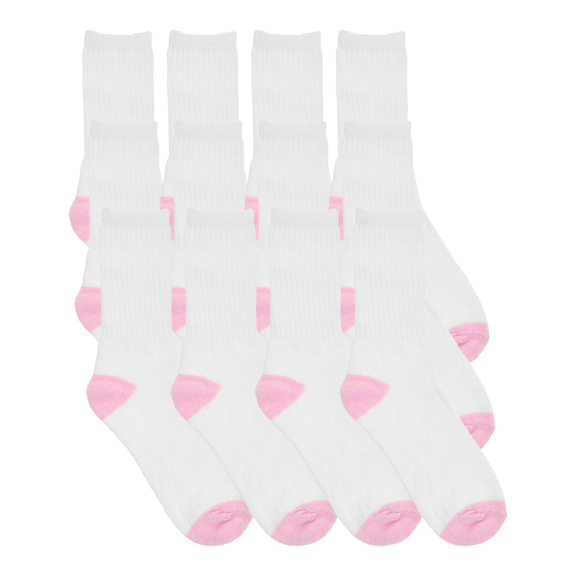 These unisex sport socks are made with a soft, and stretchy material to provide maximum comfort. They are crew length with rib knit cuffs to help keep socks in place. Available in assorted colors. S/M fits womens shoe size 6-9.5 or mens shoe size 8-10.5. Made of 77% Polyester, 20% Cotton, 3% Spandex Machine wash, tumble dry low.
