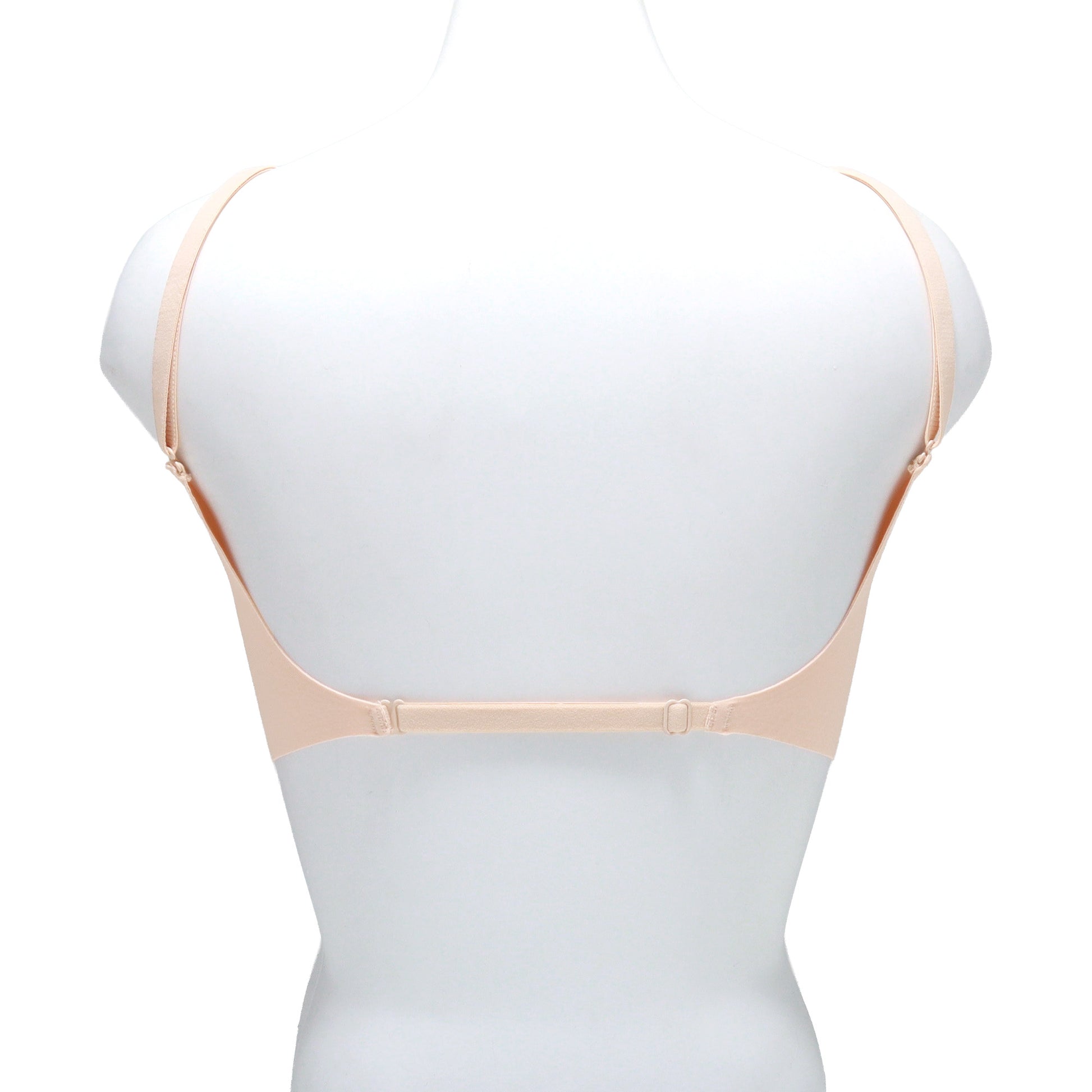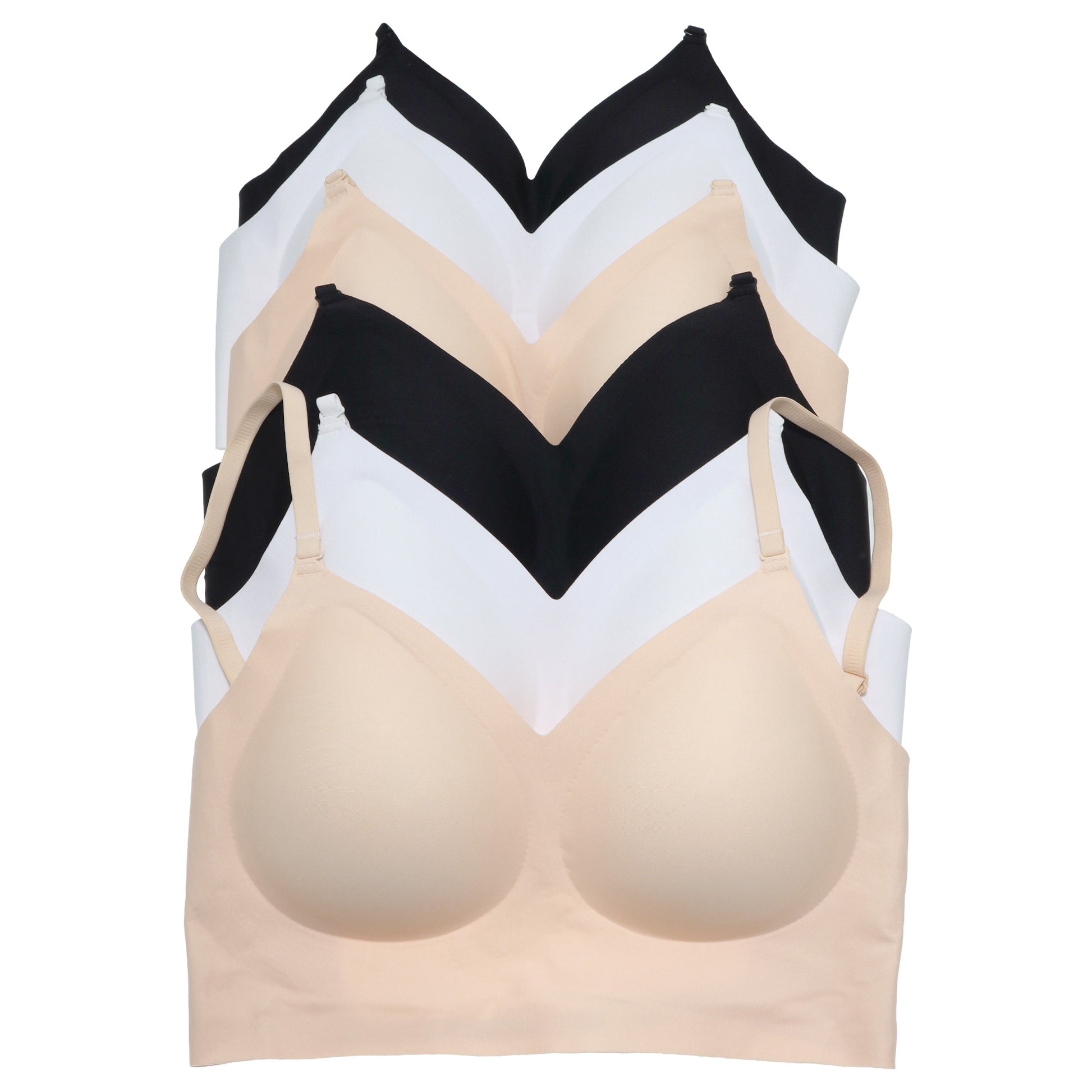 These laser cut, wire-free bras are designed for ultimate versatility and invisibility. Featuring a U-shaped, backless design and soft, stretchy fabric, it remains hidden under low-back dresses, open-back outfits, and halter tops. The bra provides light support and gentle shaping with comfortable, breathable, and removable soft pads. It is multiway and fully convertible, allowing you to customize the fit with adjustable spaghetti straps that can be configured as halter, or crisscross. Available in an assorted pack of basic colors. Comes in sizes Small, Medium, Large, X-Large. Made of 61% Nylon 39% Spandex. Hand wash, line dry.